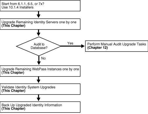 Figure 9-1 provides an overview of Identity System upgrade tasks. Additional details follow the graphic.