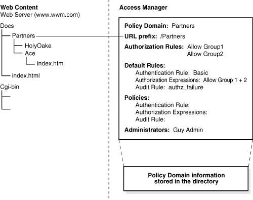 The Access System must maintain information about the policy domains that you create. Policy data includes the rules that govern access to resources.