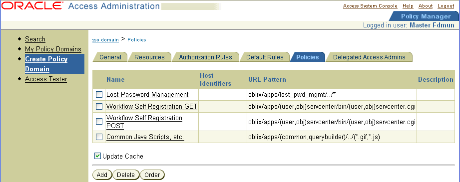 From the Policy Manager, create a new policy domain as described in Chapter 4, "Protecting Resources with Policy Domains".