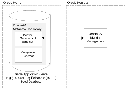 This configuration is the direct result of installing the OracleAS Metadata Repository installation type in one Oracle home and OracleAS Identity Management in a different Oracle home.