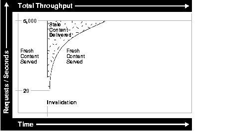 One could logically assume that widespread cache invalidation or expiration would negatively impact performance of the origin servers, resulting in the generation of HTTP 503 Server Unavailable errors to browsers. For this reason, Oracle9iAS Web Cache intelligently serves some of the documents stale until the origin servers have the capacity to refresh them.